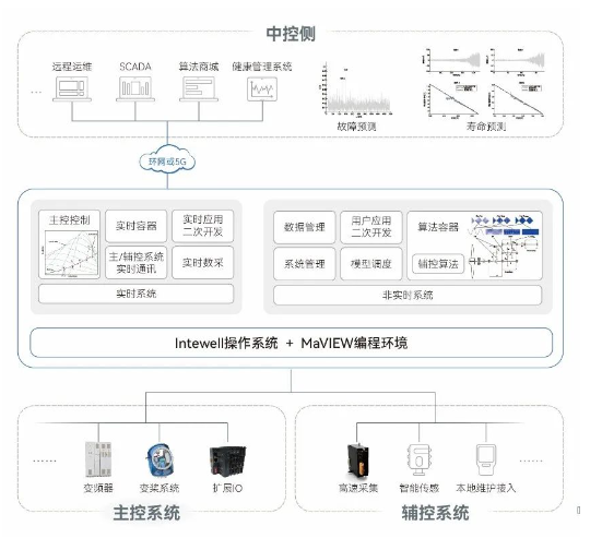 東土科技一體化輔助控制系統基于100%自主開發Intewell微內核操作系統以及MaVIEW編程軟件打造風電主控、輔控一體化智能控制平臺,提供振動監測系統的在線監測在線計算,實現CMS、BMS、TMS信號的高速采集、數據計算和存儲轉發。提供實時/非實時模型算法和算法容器,支持客戶開發自定義算法模型,實現算法模型智能訓練、下裝和調度管理,上傳模型計算結果,提供可集成到風場健康管理系統的風機診斷系統,幫助客戶實現風電機組的運行狀態監測、狀態分析、故障預測和診斷以及壽命預測等全生命周期運維管理。