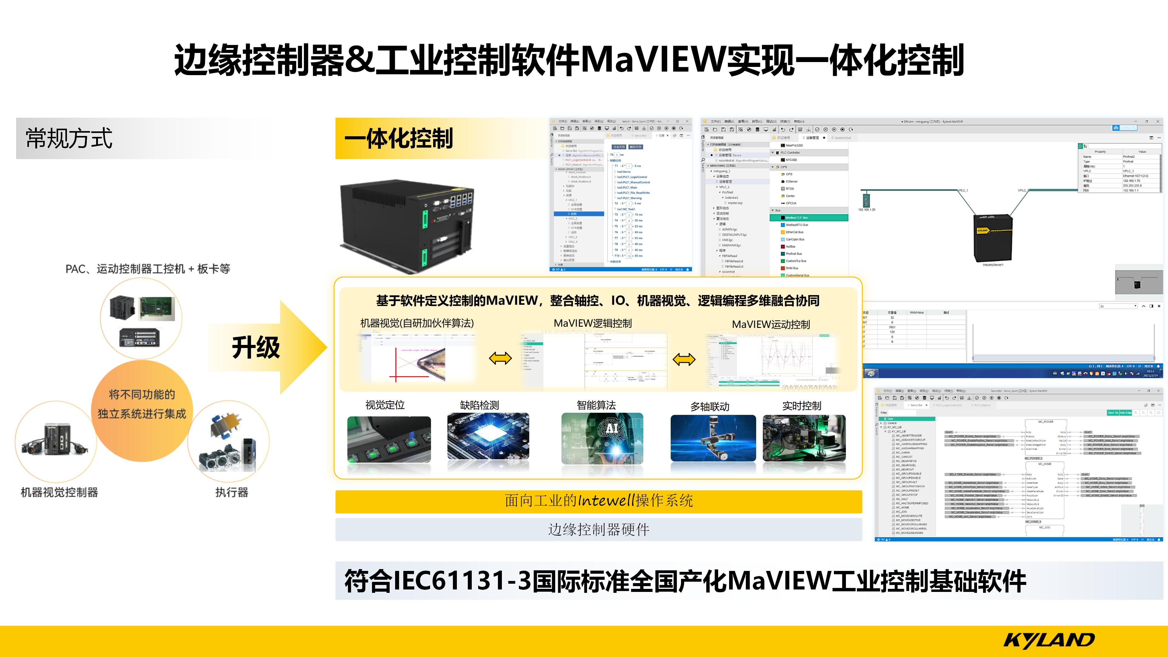 在智能制造時代,機器視覺在智能產線的檢測、測量、定位、識別環節中的精度、速度、可靠性等方面均迫切需要廣泛應用。東土科技認為,基于自主可控的Intewell操作系統和MaVIEW工業軟件的邊緣通用控制器NewPre集成視覺分析+運動控制+PLC控制+HMI的解決方案,將是智能產線建立的基礎,而機器視覺分析是產線智能化升級的核心模塊。