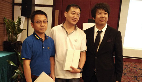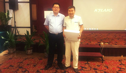 東土代理商唯思上總經理胡文平先生和獲獎(二等獎)客戶合影