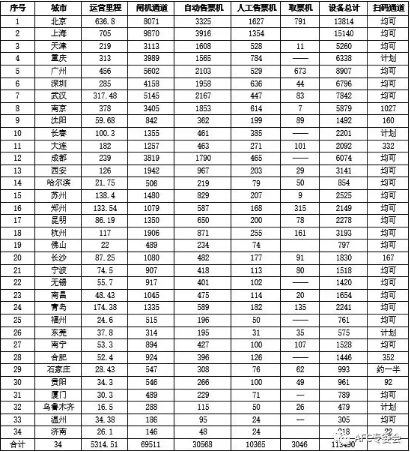 一、軌道交通AFC設備應用情況統計:
