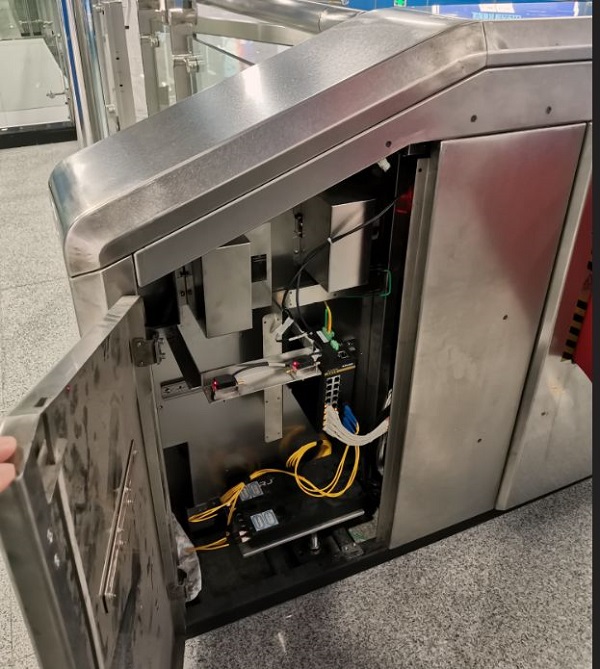 智慧城地鐵站共有A、B、C、D,4個(gè)出入口,各出入口分別設(shè)置一臺(tái)安檢機(jī),每臺(tái)安檢機(jī)安裝1臺(tái)東土公司經(jīng)過(guò)多年現(xiàn)場(chǎng)可靠運(yùn)行實(shí)踐檢驗(yàn)的第一代卡軌式工業(yè)交換機(jī),通過(guò)網(wǎng)線與中心機(jī)房設(shè)置的安檢系統(tǒng)工業(yè)交換機(jī)互連,中心核心工業(yè)交換機(jī)再通過(guò)千兆電口接入到智慧地鐵大平臺(tái)。出入口處的安檢機(jī)集成了安全及售檢票功能,過(guò)安檢的同時(shí),可進(jìn)行刷臉、刷指靜脈過(guò)閘。