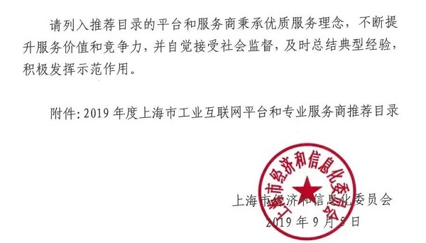 2019年9月,上海市經濟信息化委關于公布了2019年度上海市工業互聯網平臺和專業服務商推薦目錄的通知,共計46個平臺和專業服務商列入2019年度上海市工業互聯網平臺和專業服務商推薦目錄。