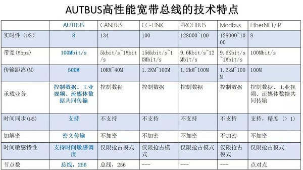 東土科技AUTBUS擁有傳統(tǒng)工業(yè)現(xiàn)場(chǎng)總線兩線制傳輸、安裝簡(jiǎn)單的優(yōu)點(diǎn),具有媲美實(shí)時(shí)以太網(wǎng)高達(dá)100Mbps的帶寬,解決了傳統(tǒng)工業(yè)現(xiàn)場(chǎng)總線帶寬低、實(shí)時(shí)性不足的問(wèn)題。它能在確保100Mbps帶寬的前提下,最遠(yuǎn)傳輸距離達(dá)500米,而不需要像實(shí)時(shí)以太網(wǎng)部署交換機(jī)等設(shè)備導(dǎo)致的復(fù)雜拓?fù)渚W(wǎng)絡(luò)。AUTBUS標(biāo)準(zhǔn)是一個(gè)定義了物理層、數(shù)據(jù)鏈路層和應(yīng)用層的完整協(xié)議棧標(biāo)準(zhǔn),通過(guò)適配處理,在數(shù)據(jù)鏈路層它可兼容現(xiàn)有的基于以太網(wǎng)IPV4和IPV6應(yīng)用業(yè)務(wù)。它真正實(shí)現(xiàn)了工業(yè)控制總線網(wǎng)絡(luò)的統(tǒng)一,推動(dòng)全球智能制造一體化建設(shè)的發(fā)展。