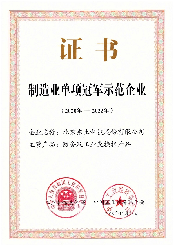 12月25日,工業和信息化部、中國工業經濟聯合會在北京召開了“2019年制造業單項冠軍經驗交流會”。作為第四批制造業單項冠軍示范企業和單項冠軍產品生產企業代表,北京東土科技股份有限公司受邀參加了此次會議。