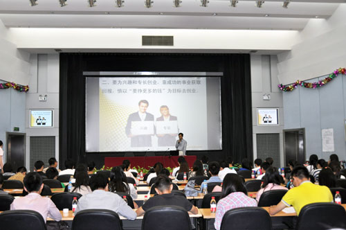 講座上,李總結(jié)合自身的創(chuàng)業(yè)經(jīng)歷,分享了自主創(chuàng)業(yè)過程中的感悟,建議創(chuàng)業(yè)者要從創(chuàng)業(yè)動機(jī)、創(chuàng)業(yè)領(lǐng)域選擇、創(chuàng)業(yè)計劃、風(fēng)險控制、團(tuán)隊意識和創(chuàng)業(yè)心態(tài)等方面進(jìn)行充分地準(zhǔn)備,強(qiáng)調(diào)了創(chuàng)業(yè)者應(yīng)具備的基本素質(zhì),為同學(xué)們的創(chuàng)業(yè)之路提供了指導(dǎo)性意見。隨后,李總就學(xué)生關(guān)心的話題進(jìn)行了互動,深入解答學(xué)生提出的創(chuàng)業(yè)問題,并高度贊揚(yáng)了學(xué)生們的創(chuàng)業(yè)激情和創(chuàng)業(yè)夢想。精彩的講座,深入的分享,受到了學(xué)生的熱烈歡迎,講座持續(xù)1個半小時,結(jié)束時同學(xué)們?nèi)愿幸猹q未盡,紛紛與李總進(jìn)行場下交流和咨詢。
