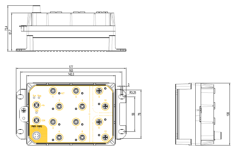 3GE9T=3X10/100/1000BASE-T(X) M12電口; 9X10/100BASE-T(X) M12電口;