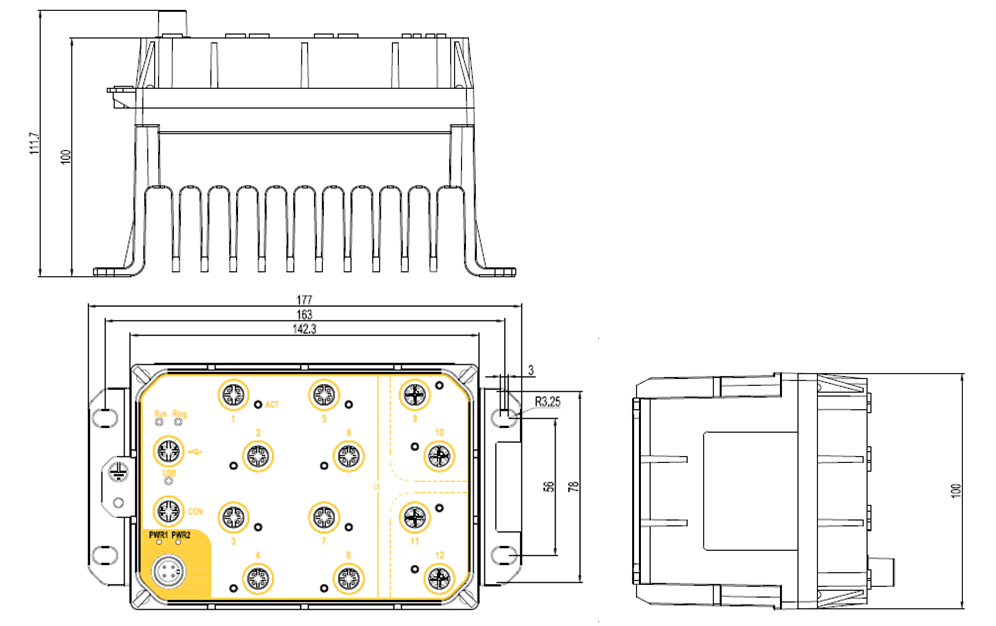 3GE9P=3X10/100/1000BASE-T(X) M12電口; 9X10/100BASE-T(X) M12 PoE電口;