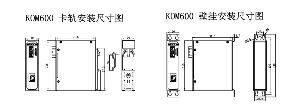 KOM600是一款綠色低功耗工業級光纖收發器,其滿載功耗低至2W. 支持1個百兆光口,1個百兆電口. 支持9-36VDC或18-72VDC冗余電源輸入. DIN卡軌式和壁掛式兩種安裝方式. IP40防護等級. 支持LFP功能(Link Fault Pass-Through).