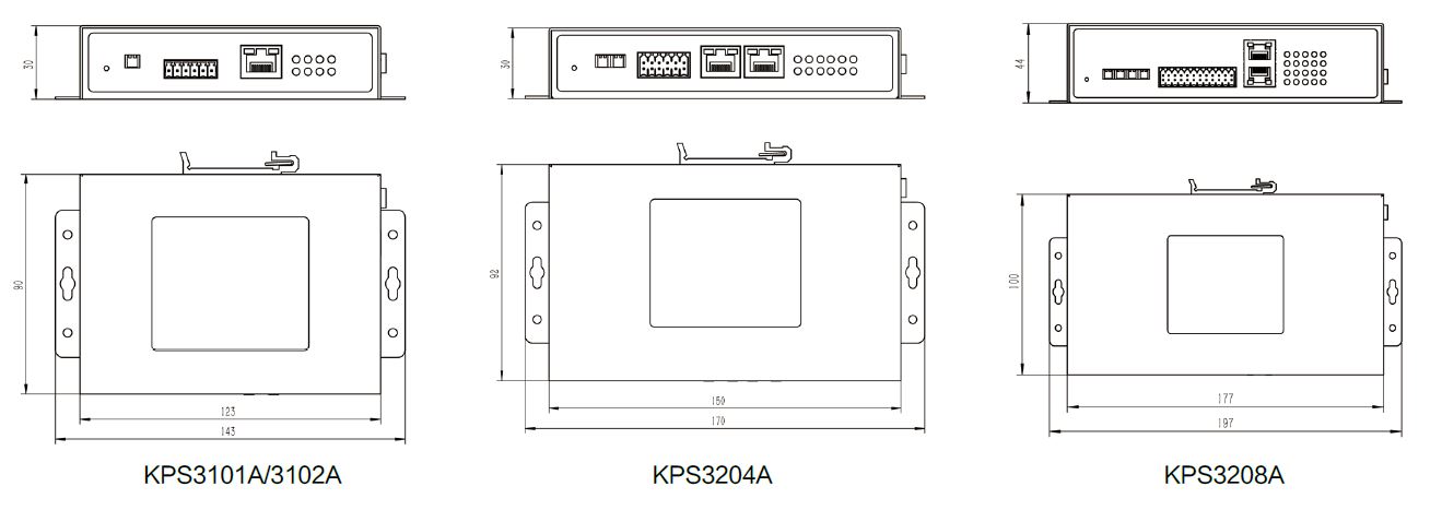 | 物理特性 | 外殼 金屬 尺寸(WxHxD) KPS3101A:30mmx123mmx90mm KPS3102A:30mmx123mmx90mm KPS3204A:30mmx150mmx92mm KPS3208A:44mmx177mmx100mm 包裝尺寸:250mmx200mmx70mm |