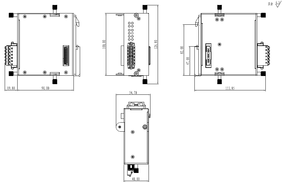| 機(jī)械結(jié)構(gòu) | 機(jī)械結(jié)構(gòu) 鋁質(zhì)外殼 防護(hù)等級(jí) IP30 尺寸 40mm x 100mm x 90mm (W x H x D) 整機(jī)重量 500g 安裝方式 導(dǎo)軌安裝 |