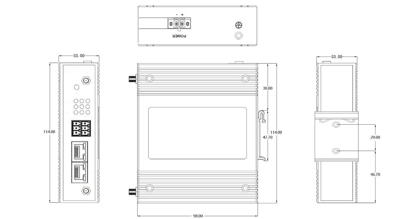 | 環(huán)境條件 | 工作溫度:-40 to 70℃ 存儲溫度:-40 to 70℃ 相對濕度:5 ~ 95%,無凝露 散熱方式:自然冷卻, 無風扇 防護等級:IP40 安裝方式:DIN 卡軌式 |