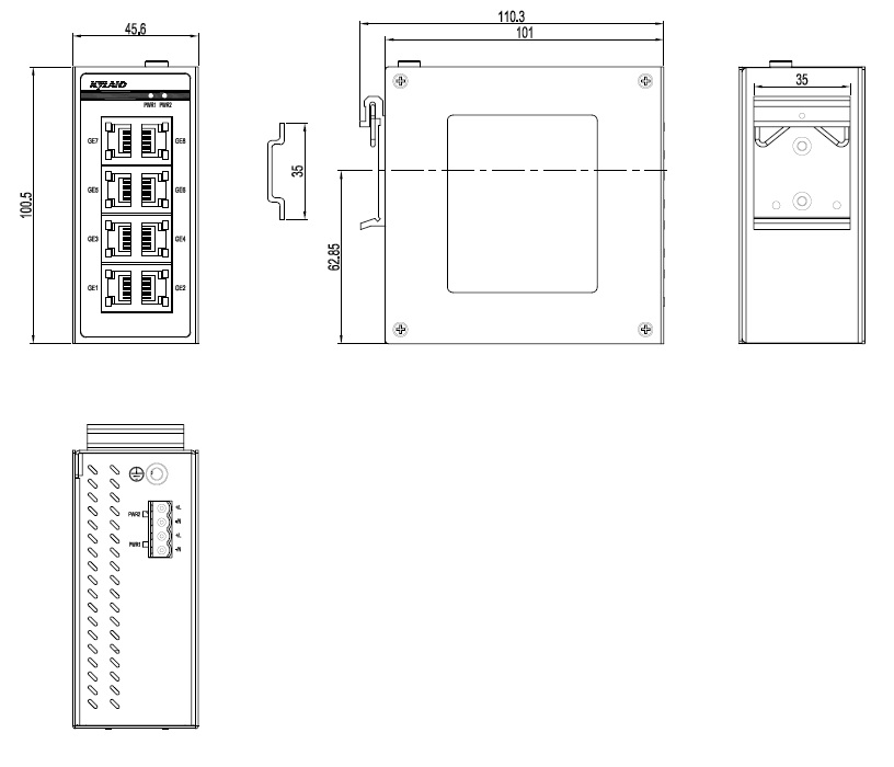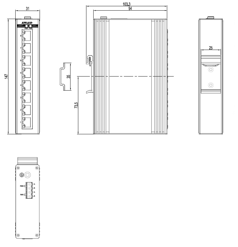 | Opal8G-8GE-LV-LV | 8×10/100/1000Base-T(X) RJ45電口 | 12-48VDC/18-30VAC, 冗余輸入 | 31mm×147mm×94mm |